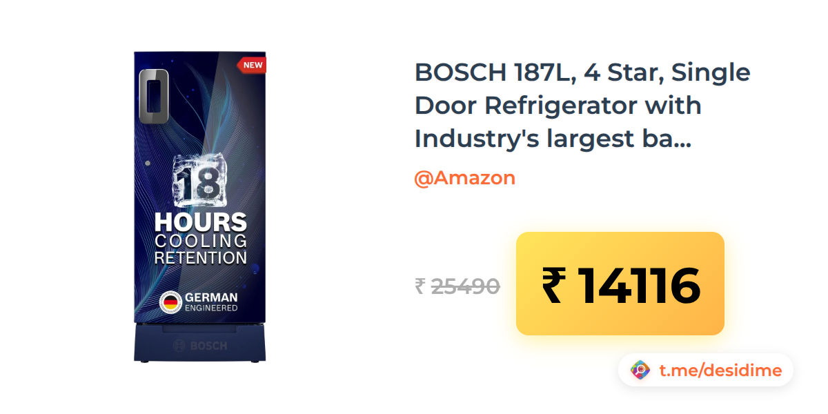 45% off on - BOSCH 187L, 4 Star, Single Door Refrigerator with Industry's largest base drawer - Rs. 14116