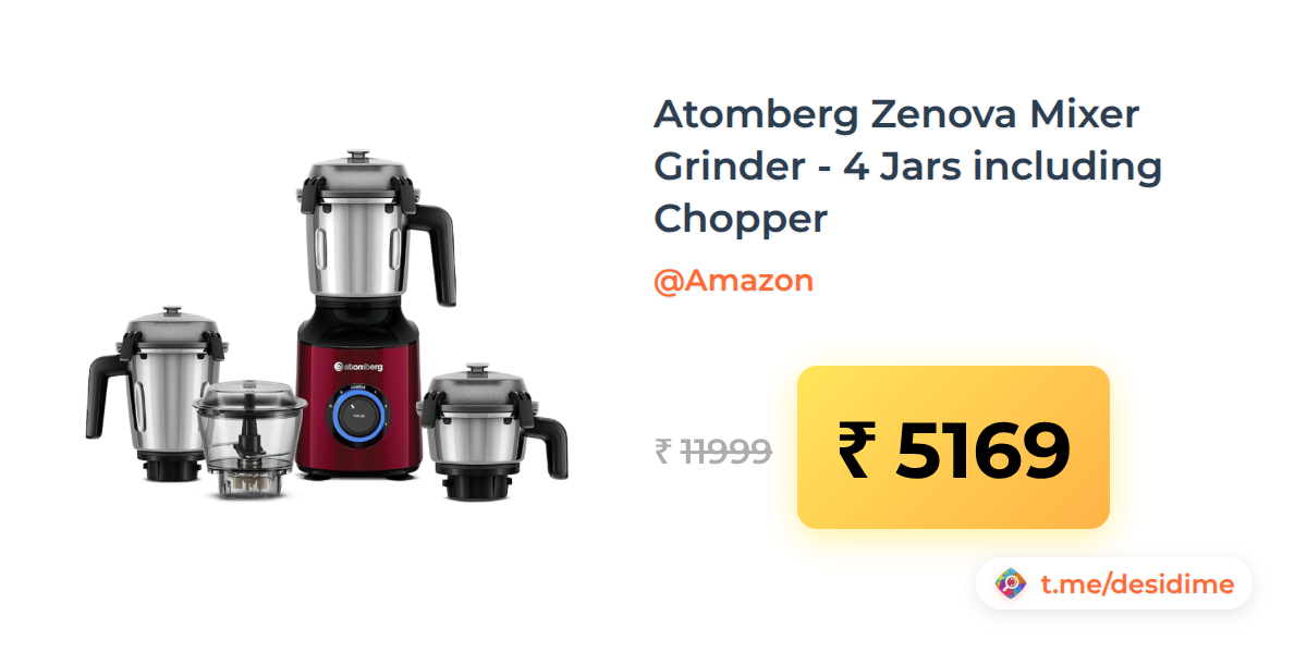 57% off on - Atomberg Zenova Mixer Grinder - 4 Jars including Chopper - Rs. 5169