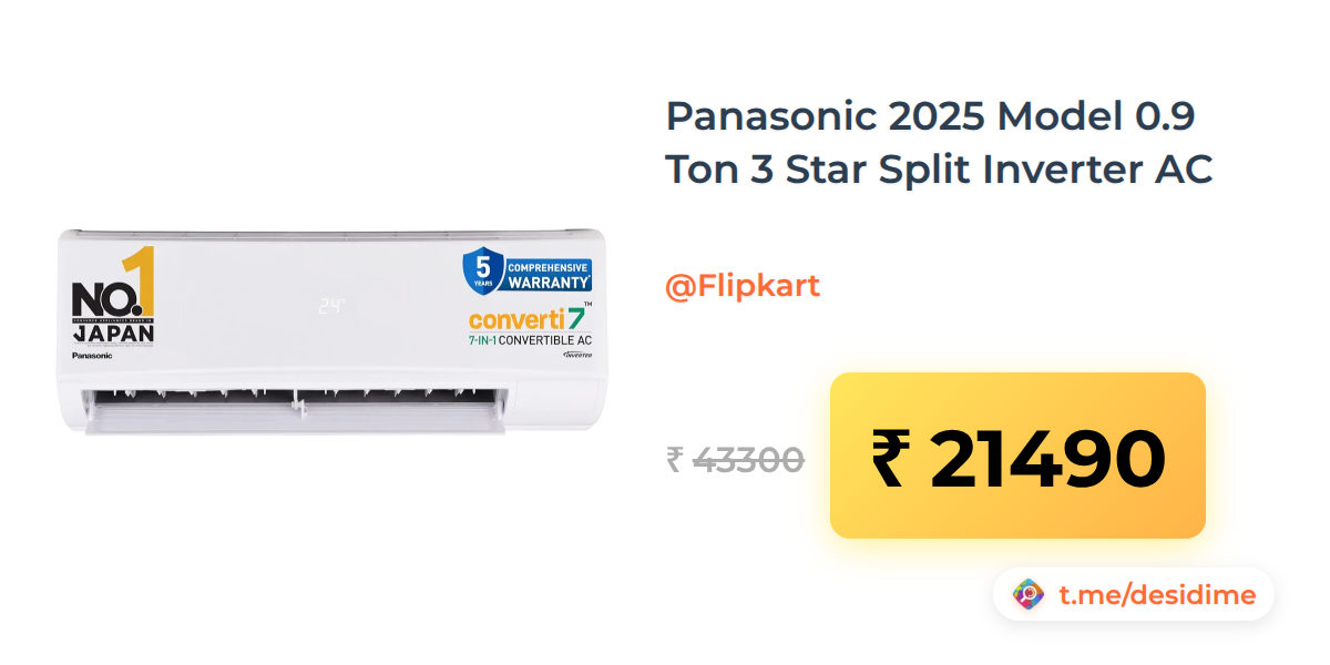 50% off on - Panasonic 2025 Model 0.9 Ton 3 Star Split Inverter AC - Rs. 21490