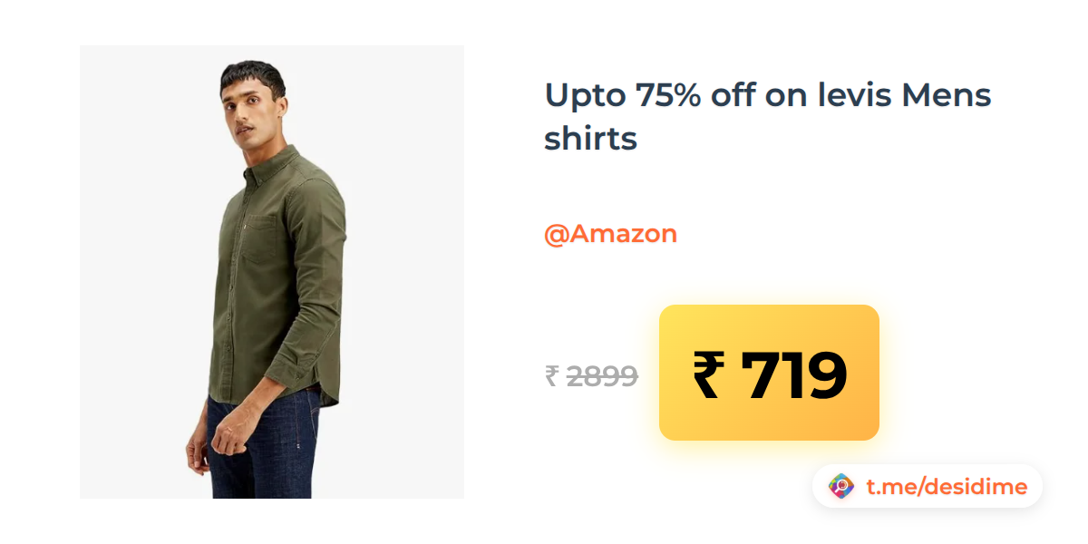 75% off on - Upto 75% off on levis Mens shirts - Rs. 719