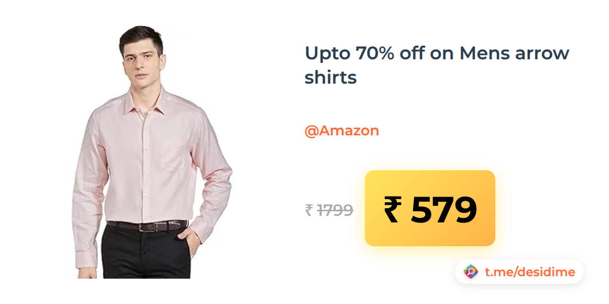 68% off on - Upto 70% off on Mens arrow shirts - Rs. 579