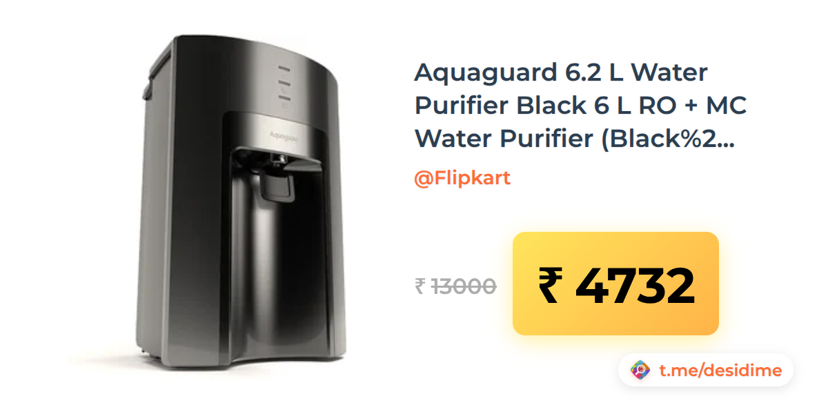 64% off on - Aquaguard 6.2 L Water Purifier Black 6 L RO + MC Water Purifier (Black, Copper) - Rs. 4732