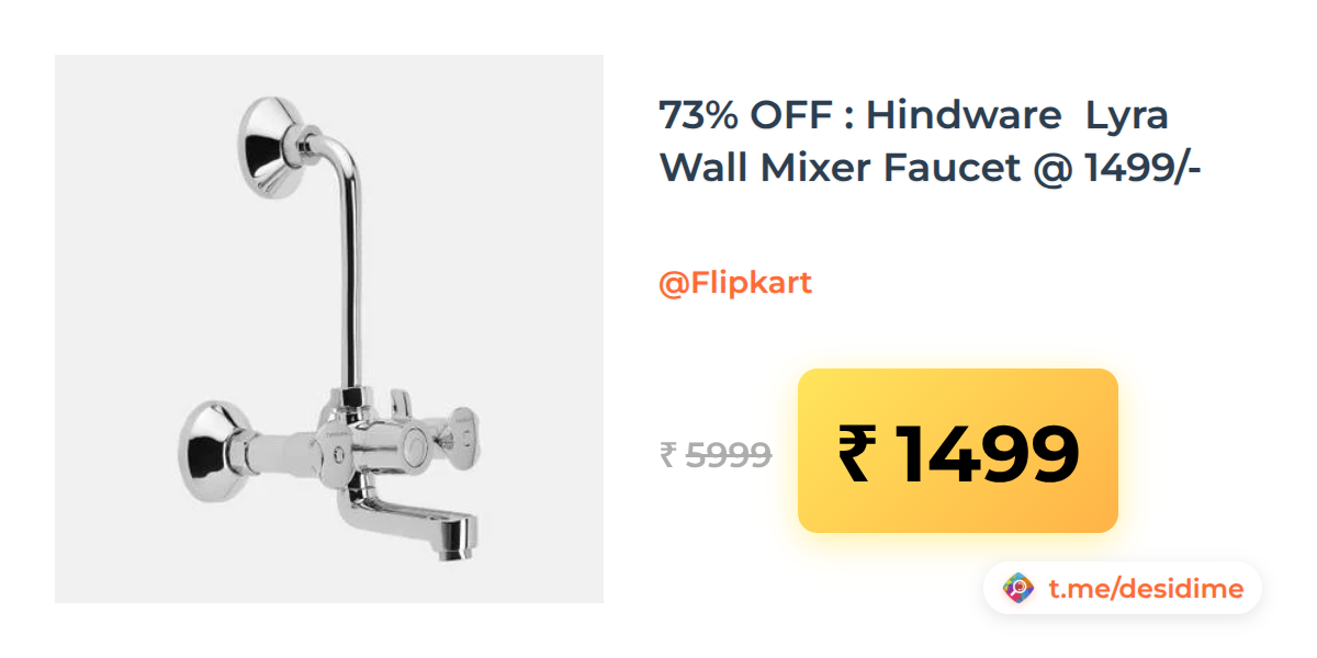75% off on - 73% OFF : Hindware Lyra Wall Mixer Faucet @ 1499/- - Rs. 1499