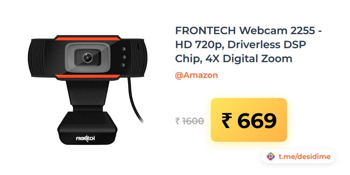 58% off on - FRONTECH Webcam 2255 - HD 720p, Driverless DSP Chip, 4X Digital Zoom - Rs. 669