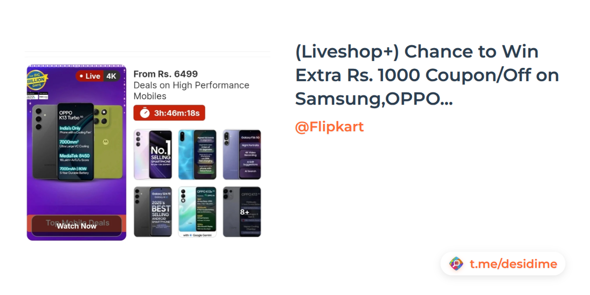 (Liveshop+) Chance to Win Extra Rs. 1000 Coupon/Off on Samsung,OPPO and Moto Phones