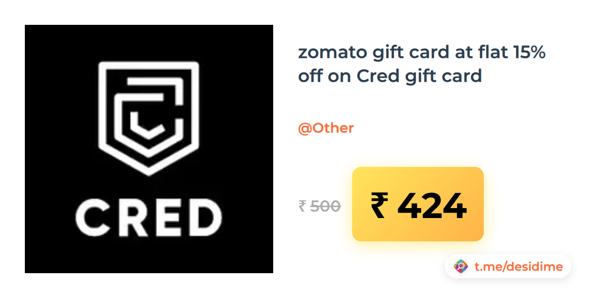 15% off on - zomato gift card at flat 15% off on Cred gift card - Rs. 424