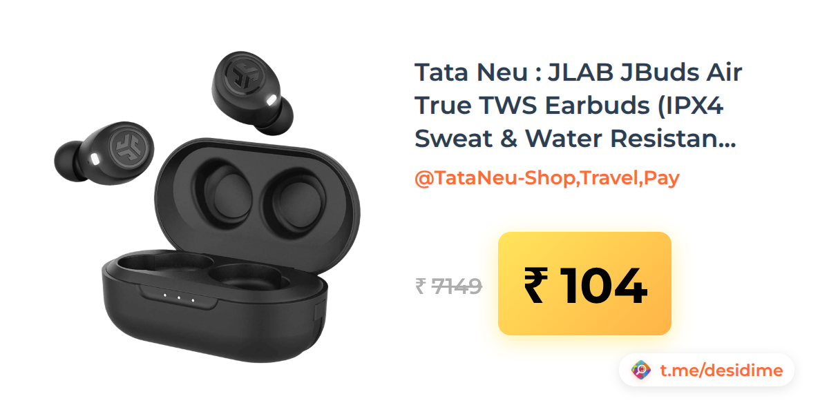 99% off on - Tata Neu : JLAB JBuds Air True TWS Earbuds (IPX4 Sweat & Water Resistant, 32 Hours Playback, Black) - Rs. 104