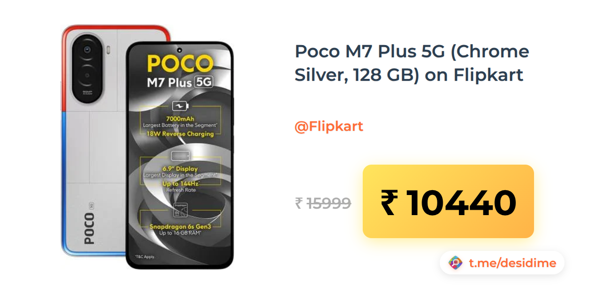 35% off on - Poco M7 Plus 5G (Chrome Silver, 128 GB) on Flipkart - Rs. 10440