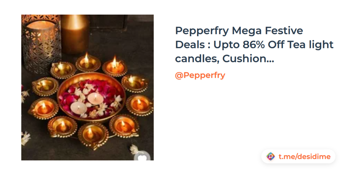 Pepperfry Mega Festive Deals : Upto 86% Off Tea light candles, Cushion covers & more starting from ₹99
