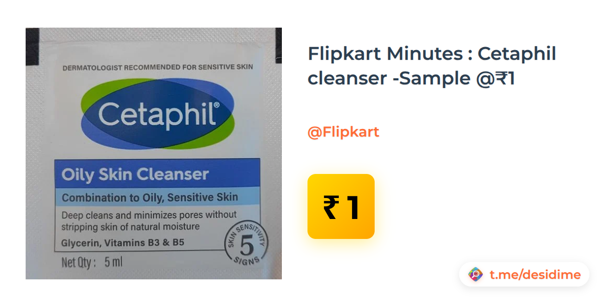 Flipkart Minutes : Cetaphil cleanser -Sample @₹1 - Rs. 1