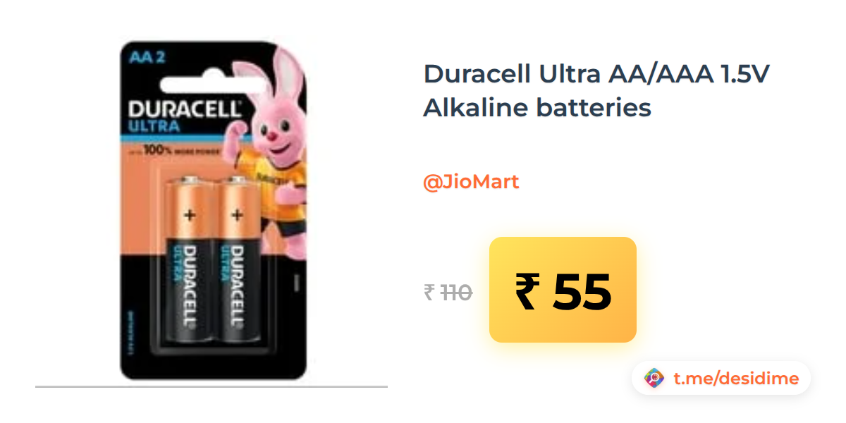 50% off on - Duracell Ultra AA/AAA 1.5V Alkaline batteries - Rs. 55