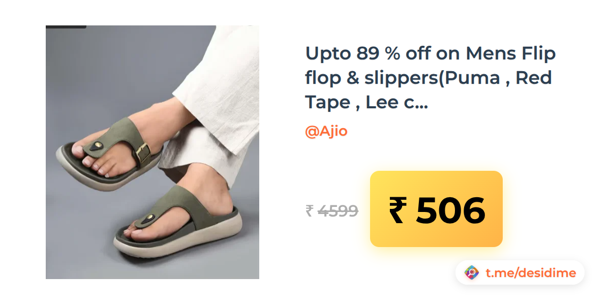 89% off on - Upto 89 % off on Mens Flip flop & slippers(Puma , Red Tape , Lee cooper) - Rs. 506