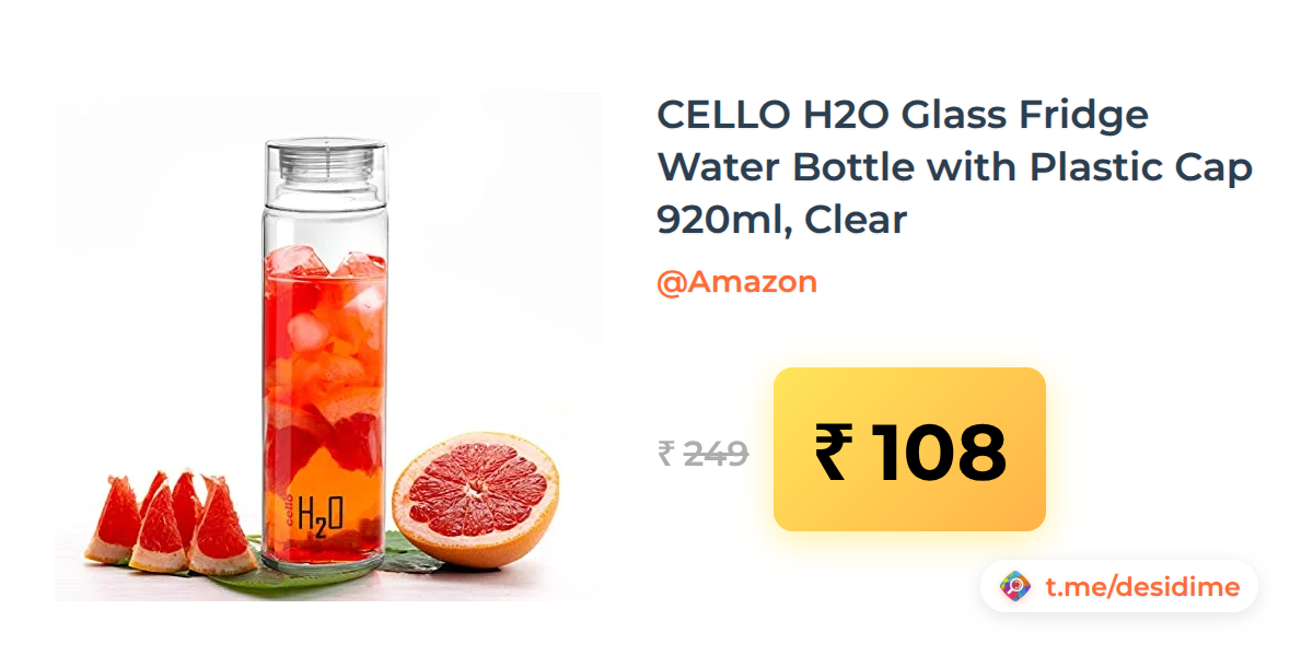 57% off on - CELLO H2O Glass Fridge Water Bottle with Plastic Cap 920ml, Clear - Rs. 108