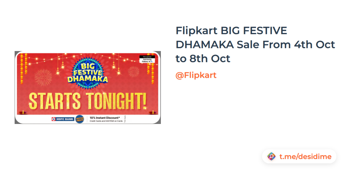 Flipkart BIG FESTIVE DHAMAKA Sale From 4th Oct to 8th Oct