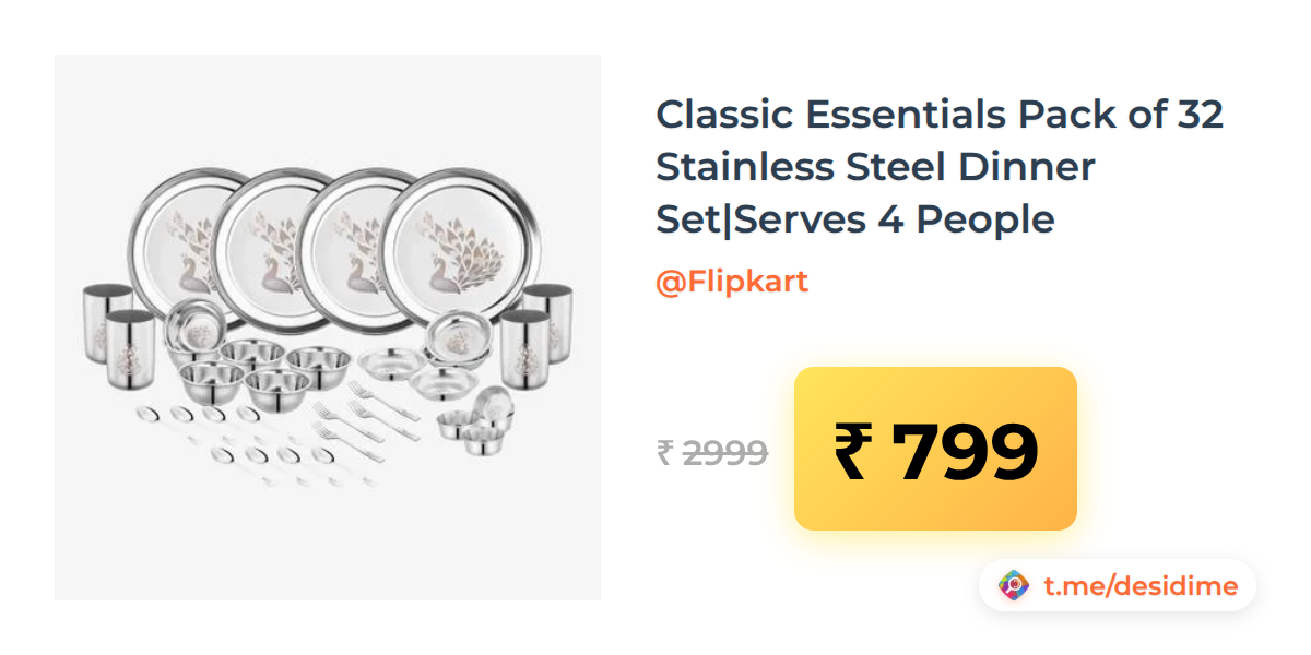 73% off on - Classic Essentials Pack of 32 Stainless Steel Dinner Set|Serves 4 People - Rs. 799