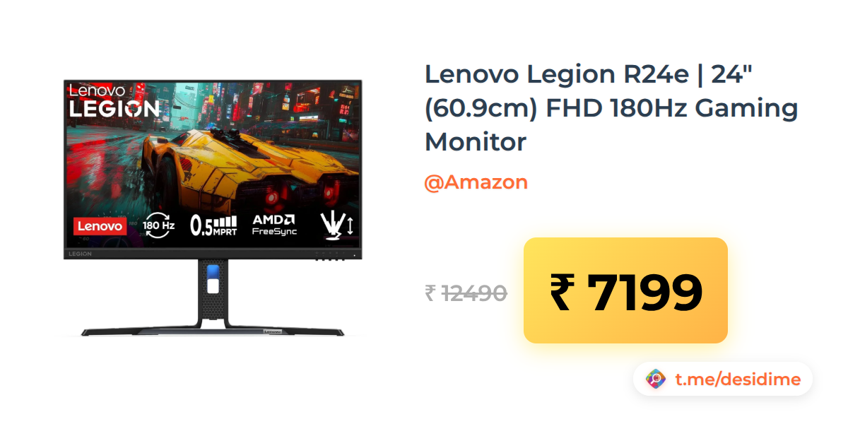 42% off on - Lenovo Legion R24e | 24" (60.9cm) FHD 180Hz Gaming Monitor - Rs. 7199