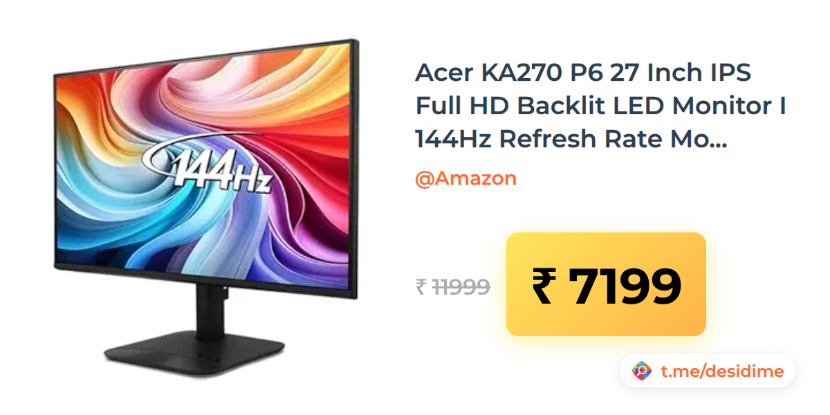 40% off on - Acer KA270 P6 27 Inch IPS Full HD Backlit LED Monitor I 144Hz Refresh Rate Monitor - Rs. 7199