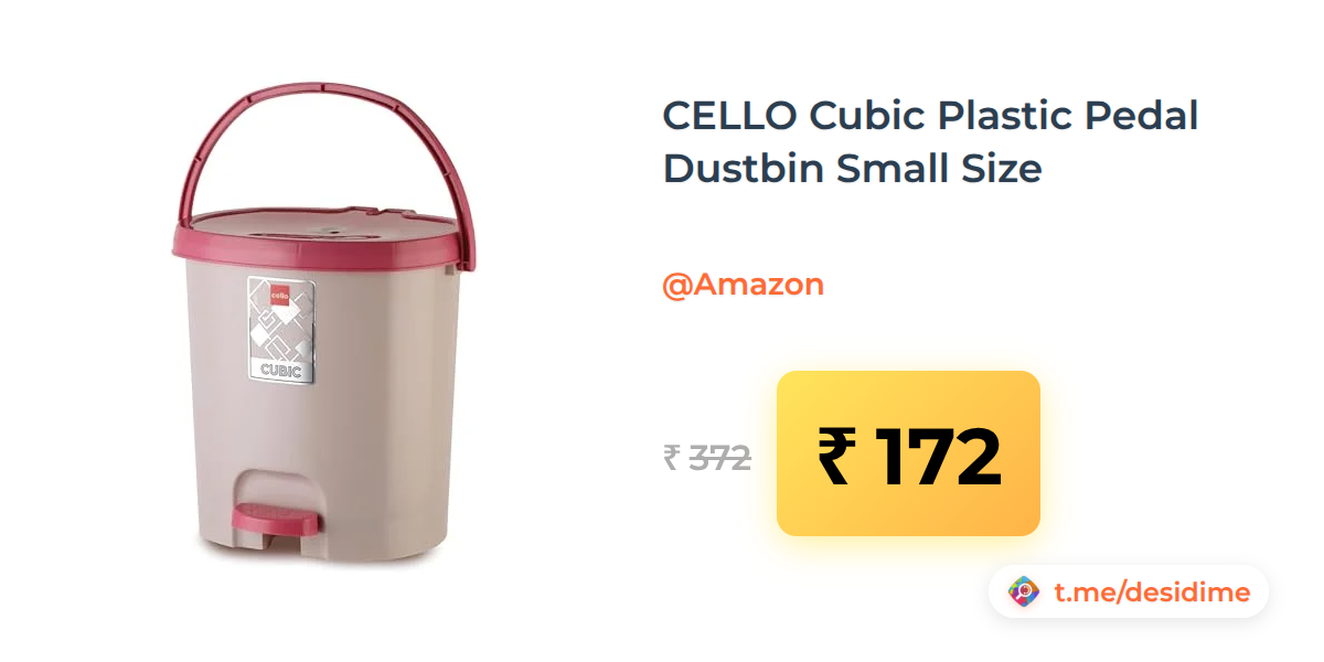 54% off on - CELLO Cubic Plastic Pedal Dustbin Small Size - Rs. 172