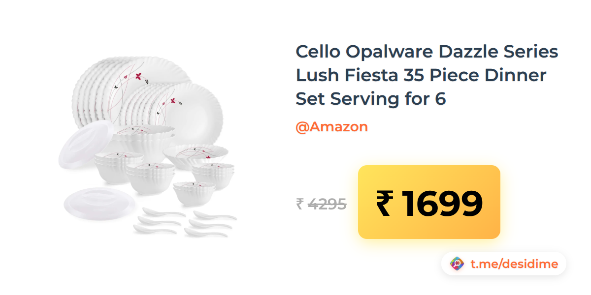60% off on - Cello Opalware Dazzle Series Lush Fiesta 35 Piece Dinner Set Serving for 6 - Rs. 1699