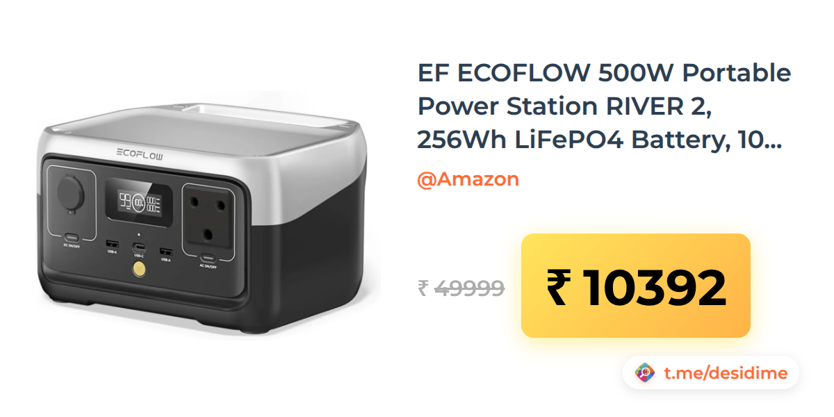 79% off on - EF ECOFLOW 500W Portable Power Station RIVER 2, 256Wh LiFePO4 Battery, 10 Year Life - Rs. 10392