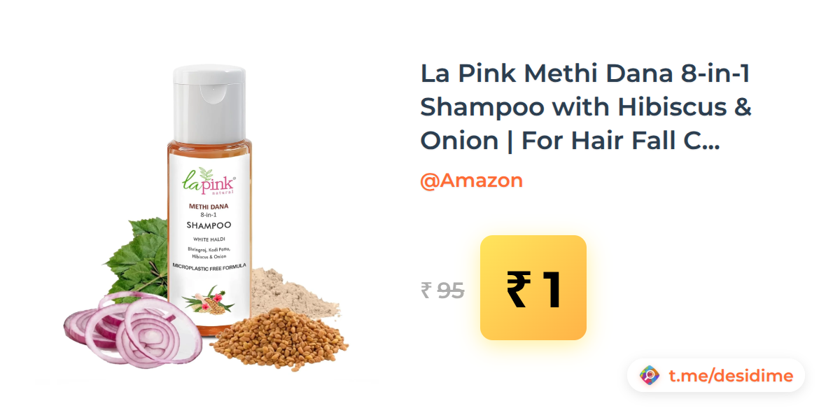 99% off on - La Pink Methi Dana 8-in-1 Shampoo with Hibiscus & Onion | For Hair Fall Control - Rs. 1