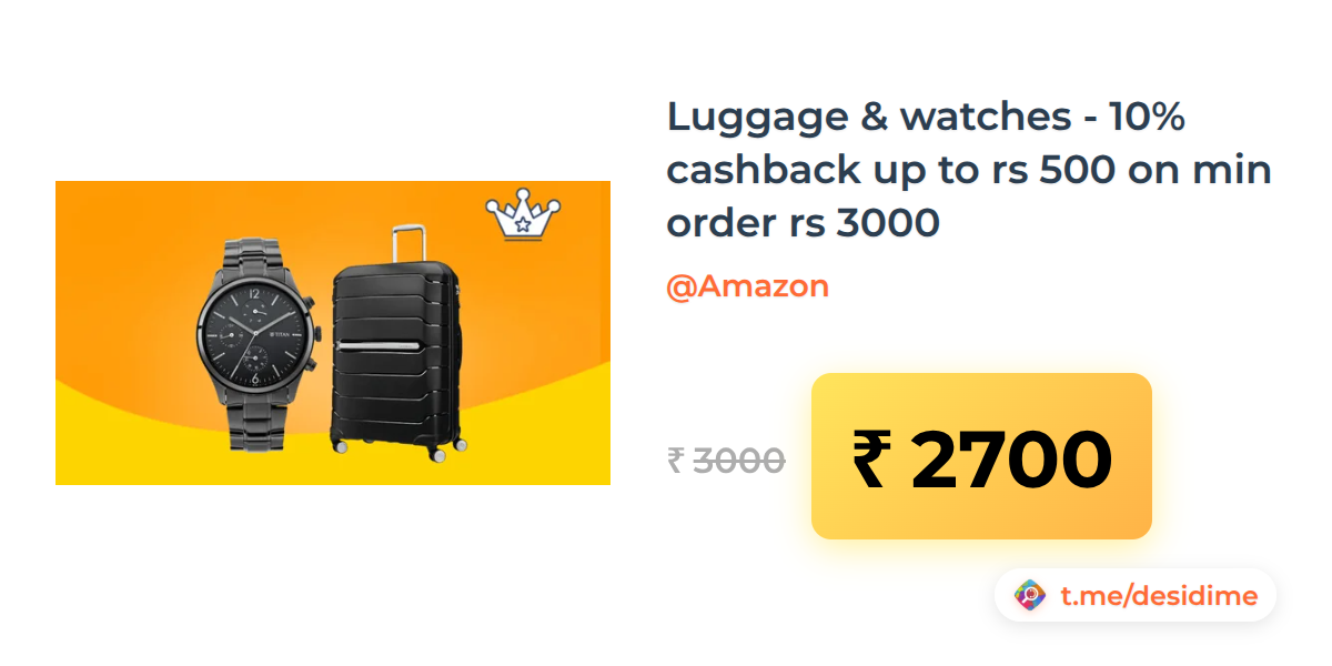 10% off on - Luggage & watches - 10% cashback up to rs 500 on min order rs 3000 - Rs. 2700