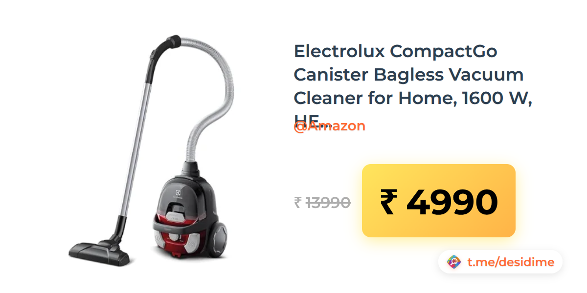 64% off on - Electrolux CompactGo Canister Bagless Vacuum Cleaner for Home, 1600 W, HEPA Filter, Dust Pro - Rs. 4990