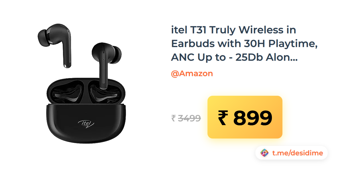 74% off on - itel T31 Truly Wireless in Earbuds with 30H Playtime, ANC Up to - 25Db Along with Transparency Mode - Rs. 899