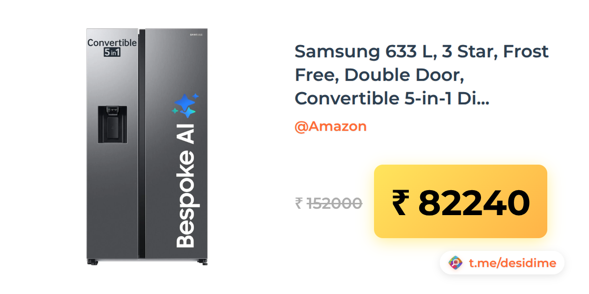 46% off on - Samsung 633 L, 3 Star, Frost Free, Double Door, Convertible 5-in-1 Digital Inverter, Side By Side Refrigerator - Rs. 82240