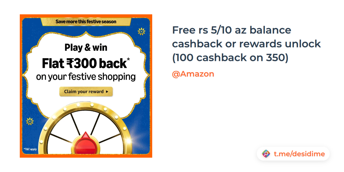 Free rs 5/10 az balance cashback or rewards unlock (100 cashback on 350)