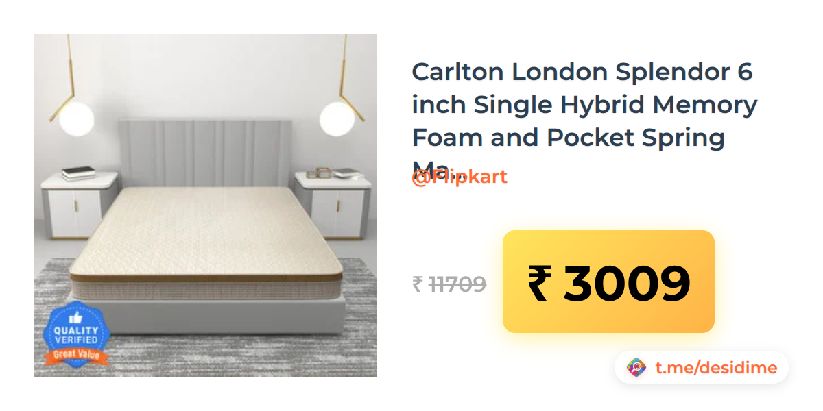74% off on - Carlton London Splendor 6 inch Single Hybrid Memory Foam and Pocket Spring Mattress (L x W: 72 inch x 42 inch) - Rs. 3009
