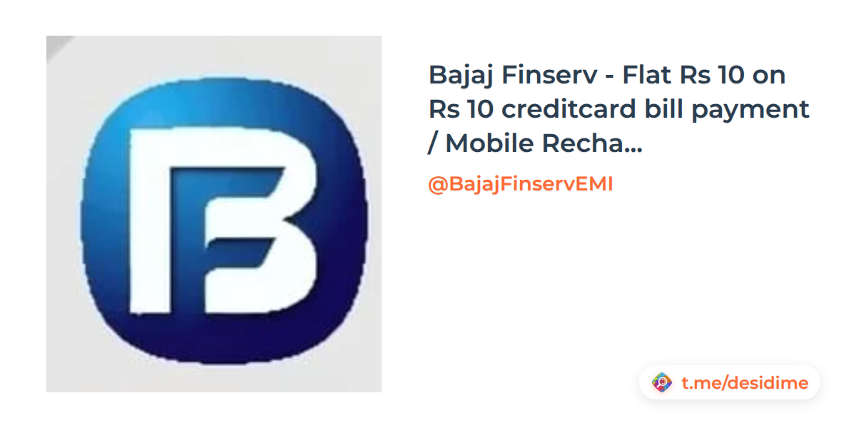 🌡 458° - Bajaj Finserv - Flat Rs 10 on Rs 10 creditcard bill payment / Mobile Recharge ( 7 PM - 9 PM)