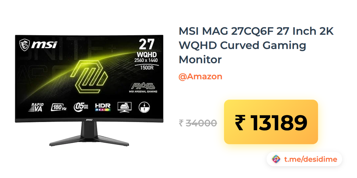 61% off on - MSI MAG 27CQ6F 27 Inch 2K WQHD Curved Gaming Monitor - Rs. 13189