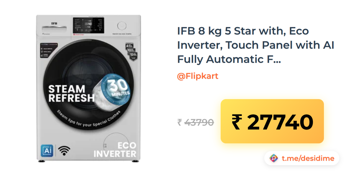 37% off on - IFB 8 kg 5 Star with, Eco Inverter, Touch Panel with AI Fully Automatic Front Load Washing Machine - White - Rs. 27740