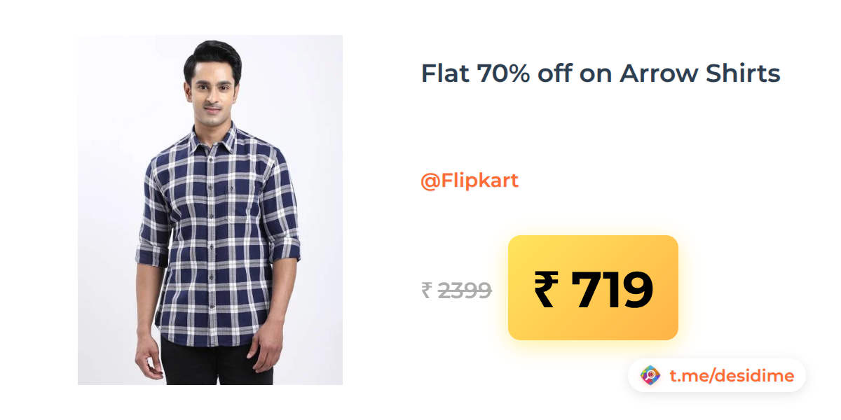 70% off on - Flat 70% off on Arrow Shirts - Rs. 719