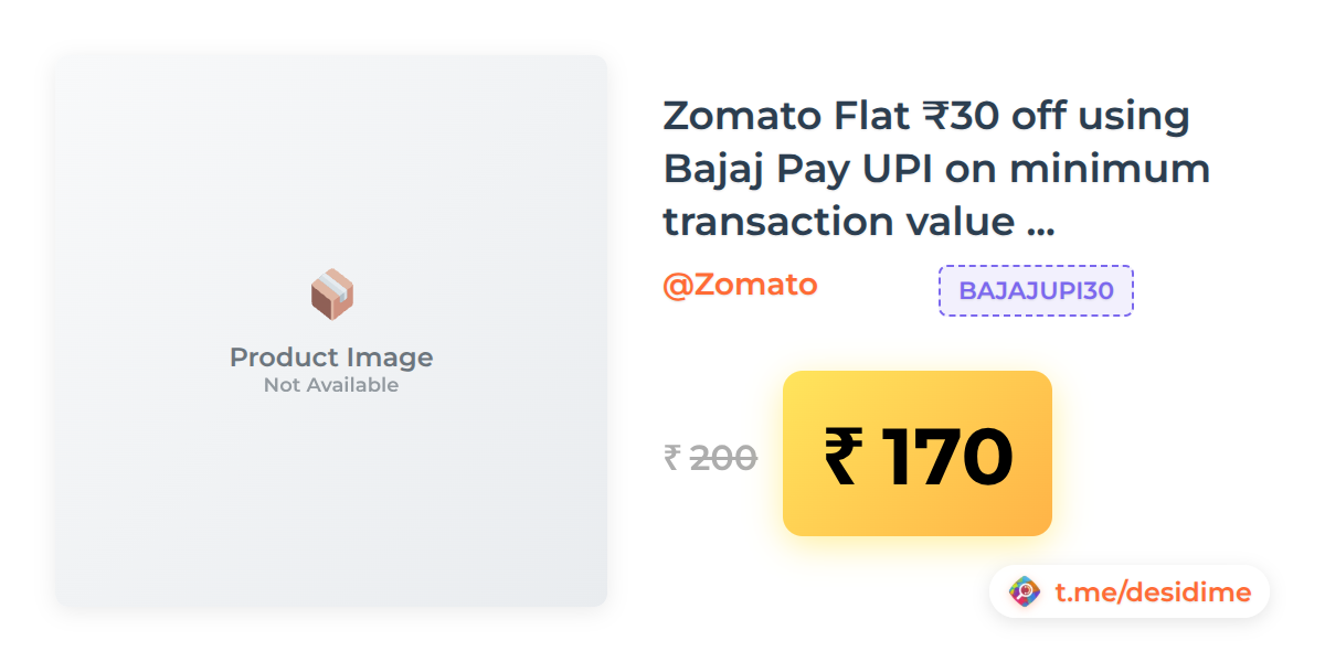 15% off on - Zomato Flat ₹30 off using Bajaj Pay UPI on minimum transaction value of ₹200 - Rs. 170
