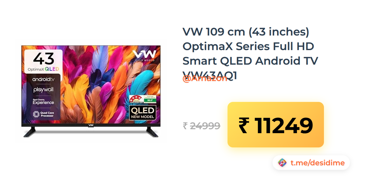 55% off on - VW 109 cm (43 inches) OptimaX Series Full HD Smart QLED Android TV VW43AQ1 - Rs. 11249