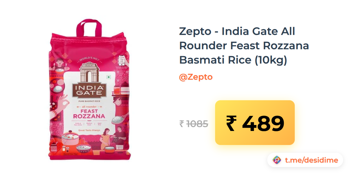55% off on - Zepto - India Gate All Rounder Feast Rozzana Basmati Rice (10kg) - Rs. 489