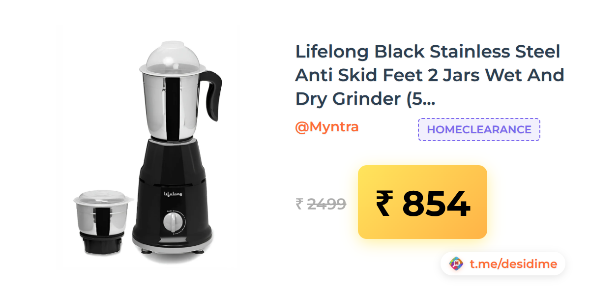 66% off on - Lifelong Black Stainless Steel Anti Skid Feet 2 Jars Wet And Dry Grinder (500W) - Rs. 854