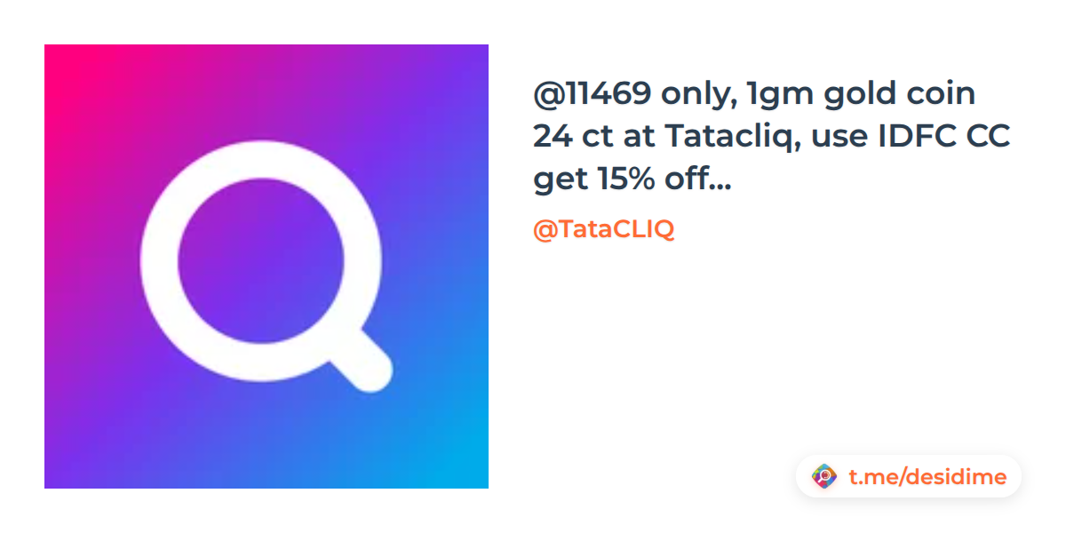 @11469 only, 1gm gold coin 24 ct at Tatacliq, use IDFC CC get 15% off, fast