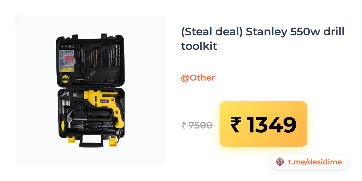82% off on - (Steal deal) Stanley 550w drill toolkit - Rs. 1349