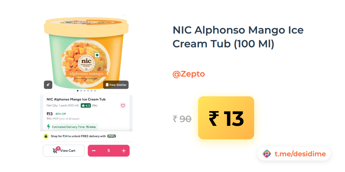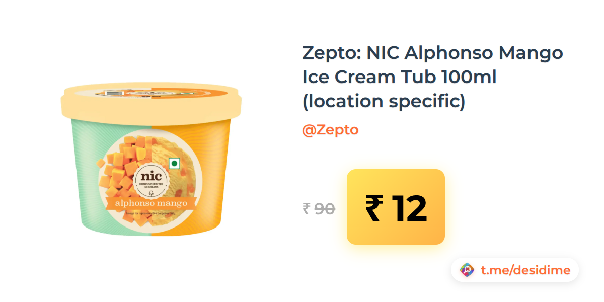 87% off on - Zepto: NIC Alphonso Mango Ice Cream Tub 100ml (location specific) - Rs. 12