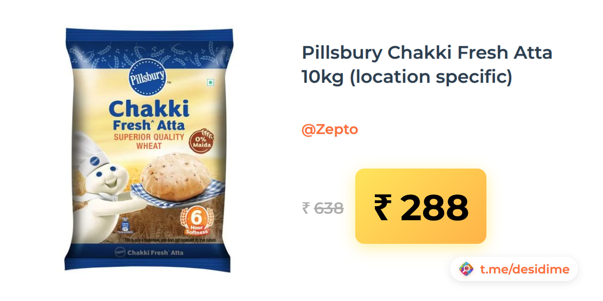 55% off on - Pillsbury Chakki Fresh Atta 10kg (location specific) - Rs. 288