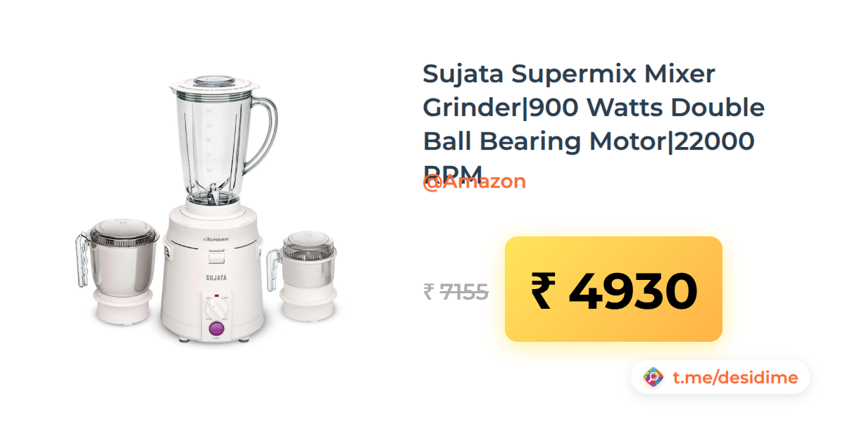 31% off on - Sujata Supermix Mixer Grinder|900 Watts Double Ball Bearing Motor|22000 RPM - Rs. 4930