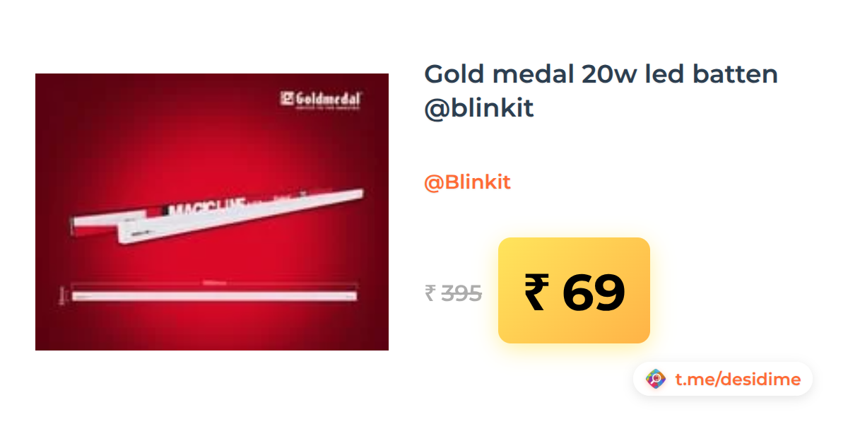 83% off on - Gold medal 20w led batten @blinkit - Rs. 69
