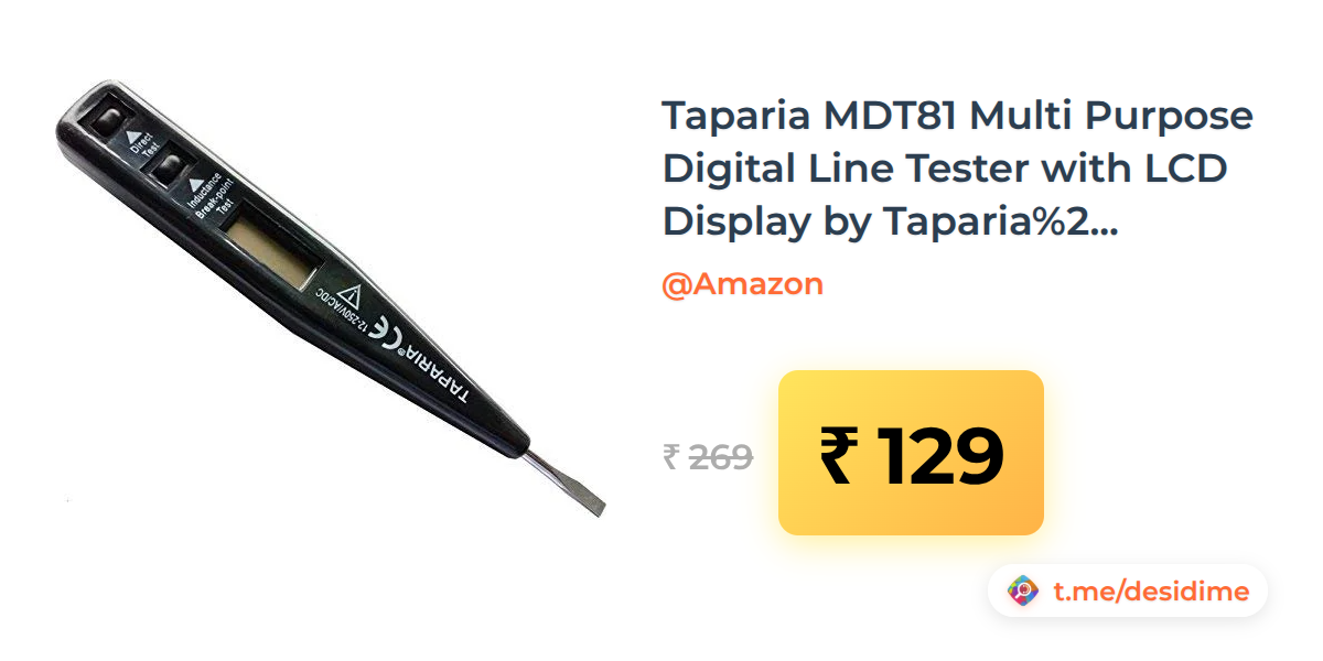 52% off on - Taparia MDT81 Multi Purpose Digital Line Tester with LCD Display by Taparia, Corded Electric - Rs. 129
