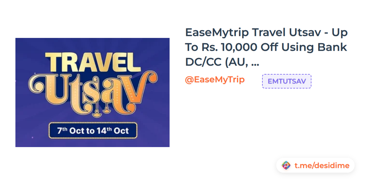 EaseMytrip Travel Utsav - Up To Rs. 10,000 Off Using Bank DC/CC (AU, BOB, ICICI, PNB, YES) + many more offers