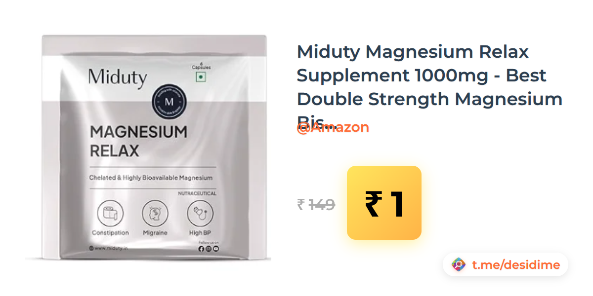 99% off on - Miduty Magnesium Relax Supplement 1000mg - Best Double Strength Magnesium Bis glycinate and Oxide | Leg cramps, Muscle Cramp,Migraine,Good Sleep | 6 Capsules - Rs. 1