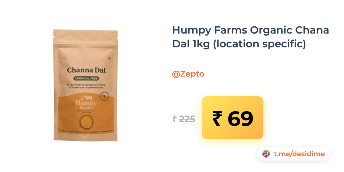 69% off on - Humpy Farms Organic Chana Dal 1kg (location specific) - Rs. 69