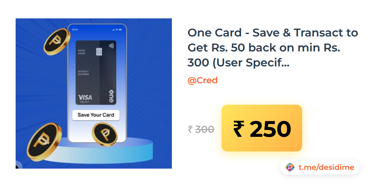 17% off on - One Card - Save & Transact to Get Rs. 50 back on min Rs. 300 (User Specific) - Rs. 250